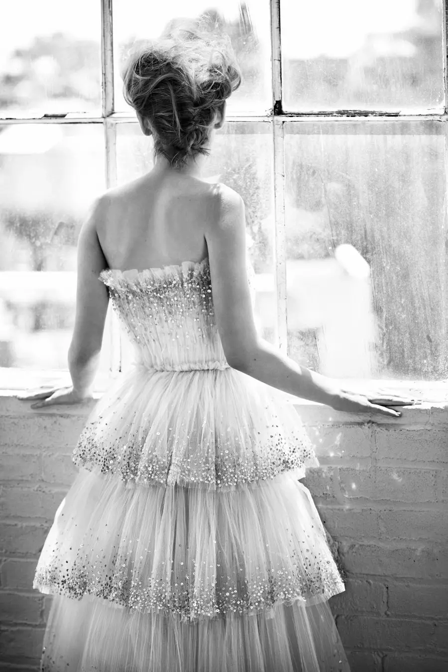 Las imágenes muestran unos diseños de delicada sofisticación: llenos de volúmenes, tul y organza. Vestidos palabra de honor con faldas voluminosas y bordados de lentejuelas y cristales, como un firmamento nocturno, y escotes halter con tul y lazadas. Una colección que no puede ser más sofisticada y sensual; Carolina Herrera en estado puro.