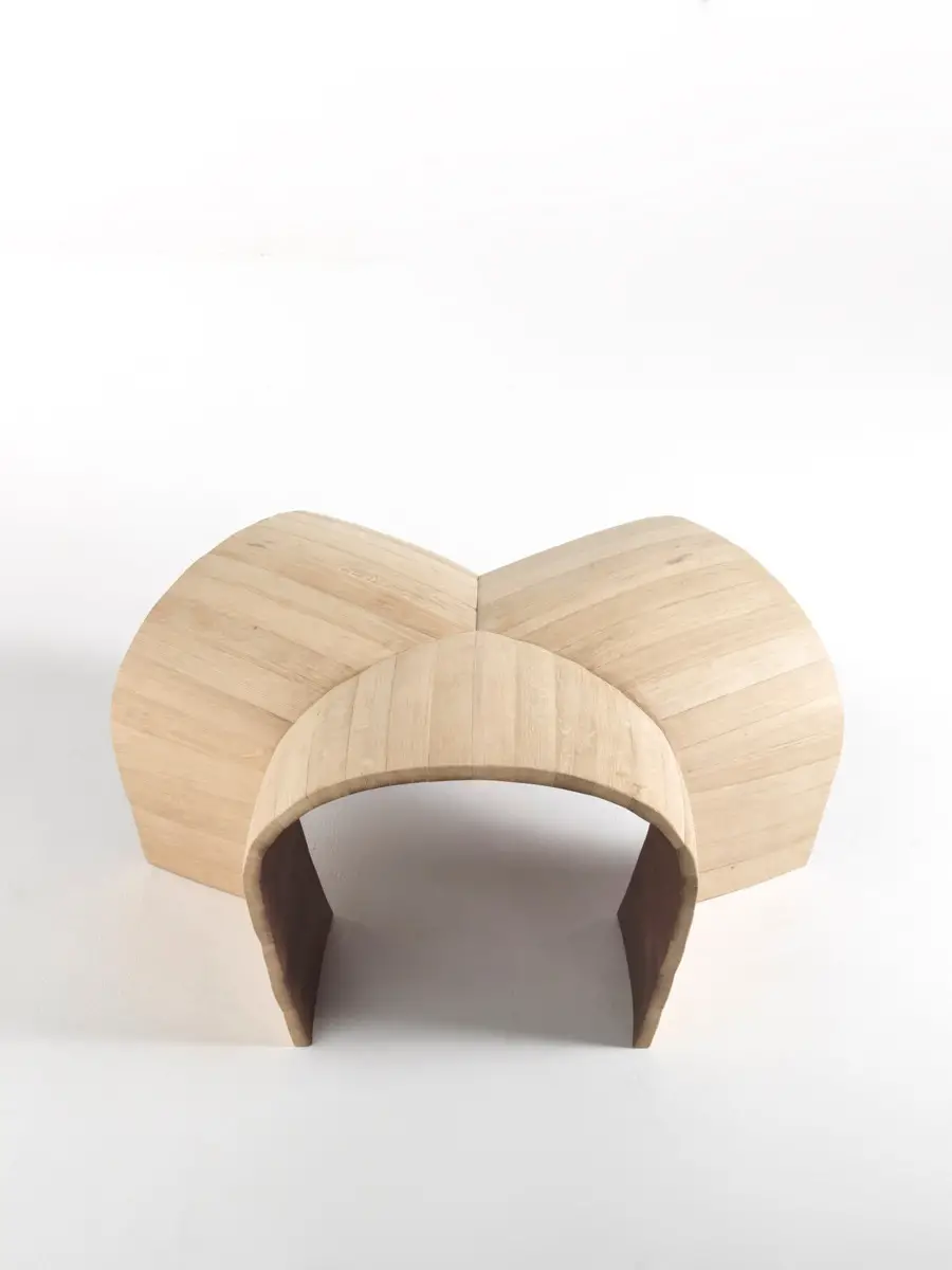 El hogar de San Patrignano, que acoge a más de 1.300 jóvenes, dispone de una bodega y de ella se han salido las barricas de roble sobre las que se ha desarrollado The Barrique Project en los últimos tres años: en este tiempo algunos de los diseñadores más importantes del panorama internacional, como la propia Patricia Urquiola, han sido tentados y caído en la tentación de diseñar un objeto utilizando la madera de esas barricas, conseguido el diseño quedaba llevarlo a la madera y esa ha sido labor de los jóvenes que viven en el centro de San Patrignano.