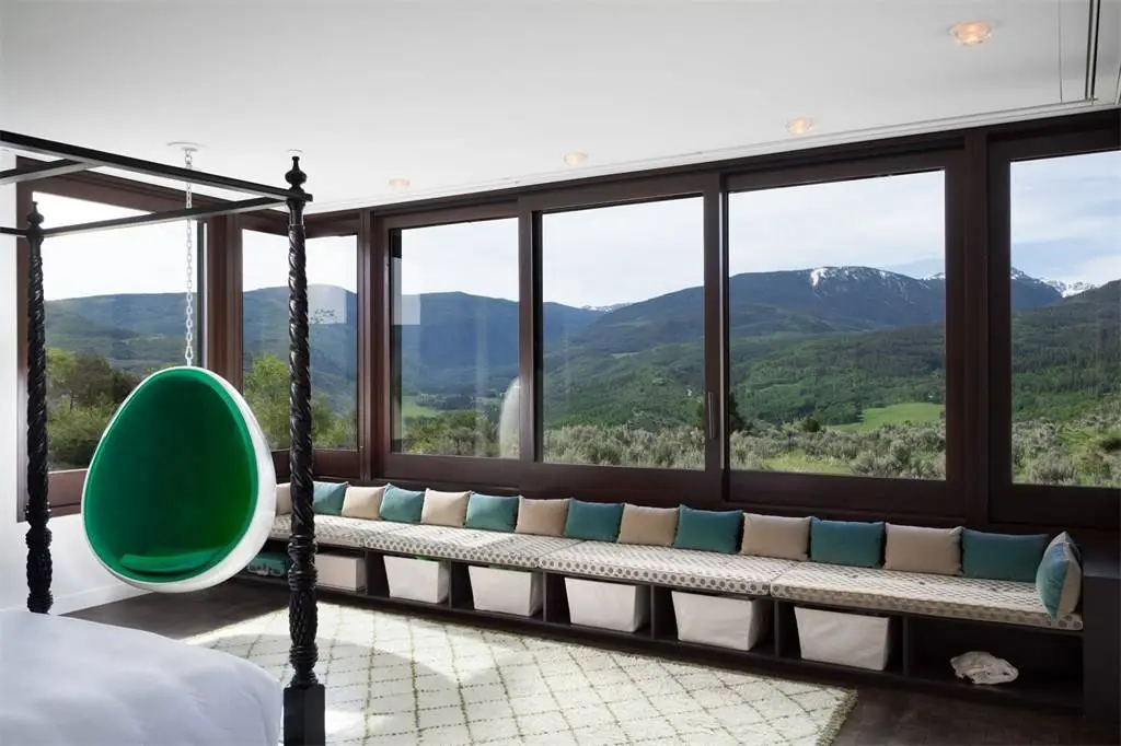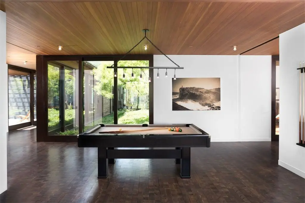 Con 7 dormitorios y 9 baños, la casa cuenta con grandes ventanales de suelo a techo que integran más si cabe la vida en el interior y el entorno natural en el que está situada; la arquitecta Annabelle Selldorf es la responsable los casi 1.000 metros cuadrados de casa mientras George Schaffer se ocupa de los espacios exteriores -algo más de 28 hectáreas-; en el proyecto, con la intención de explotar al máximo la belleza del entorno natural de esta casa, ha participado también la paisajista Edwina Von Gal.