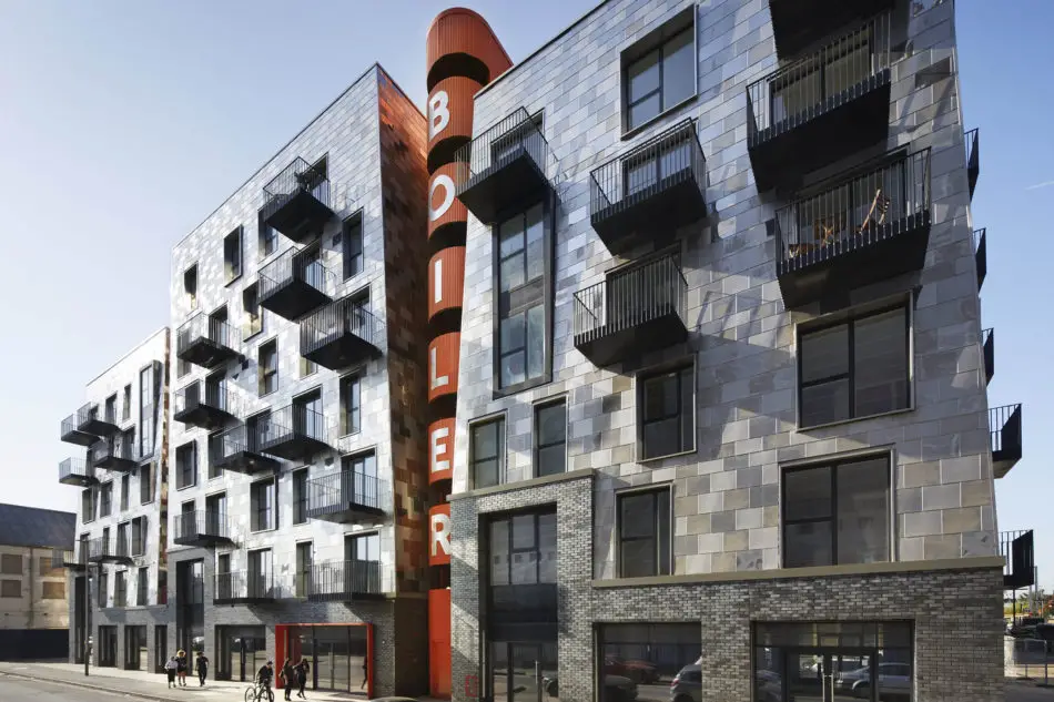 The Boiler House es un edificio de 54 apartamentos de dos habitaciones con zonas comunes en la terraza del tejado y trasteros para bicicletas; son apartamentos amplios, modernos y luminosos, las habitaciones son todas dobles y en su diseño manda la sencillez, el blanco, la madera, los grandes ventanales y también las terrazas y balcones. Además, The Boiler House es sólo el primer desarrollo de esta zona, el plan urbanístico supone la construcción de más de 600 apartamentos y también zonas de ocio y comerciales, lo que un día fue la sede de EMI será en un futuro no muy lejano uno de los barrios más chic de Londres.