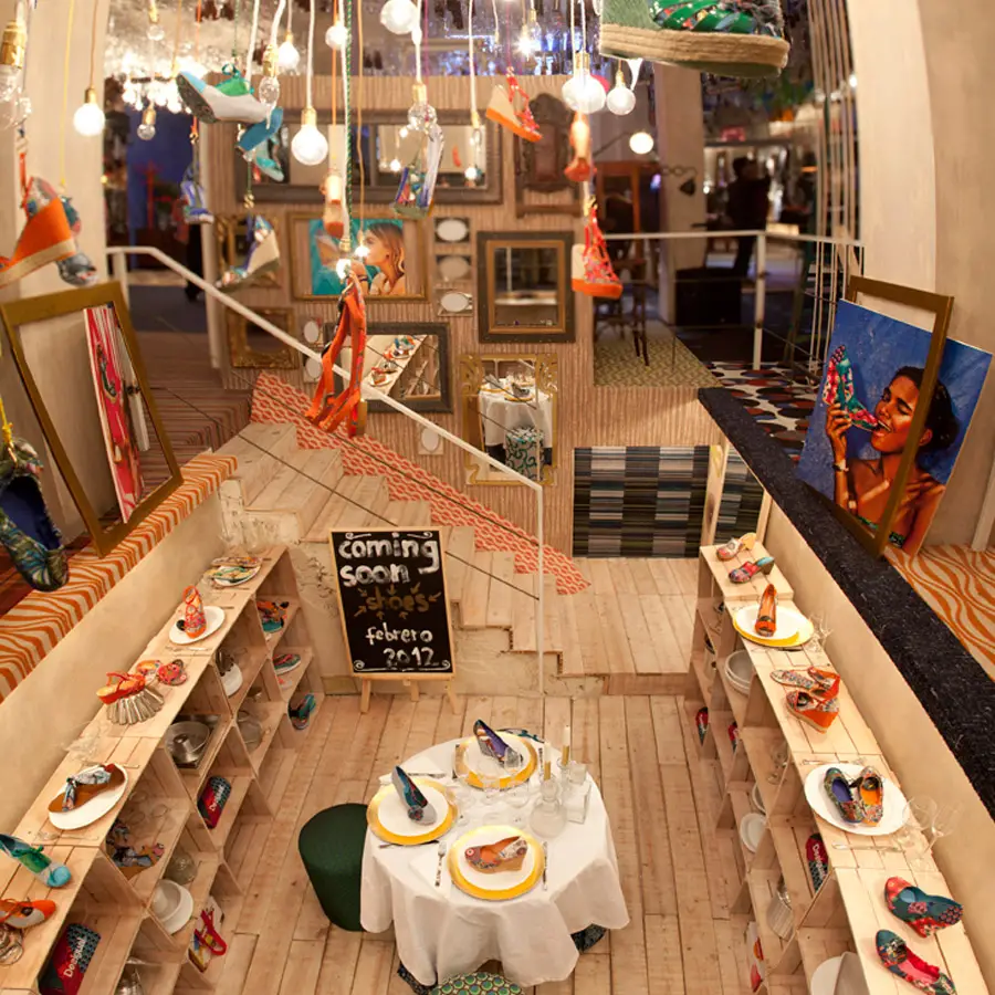 Cruzar el umbral de La Casa de la Vida es Chula, es acceder a un inmenso bazar decorado en el que conviven de forma bohemia recuerdos de viajes, muebles antiguos, lámparas, jarrones, mesas, sofás… Entrar en este universo onírico es transportarse a un hogar dónde no pasa nada si aparece de pronto la ropa tendida junto a una lámpara de murano, obras de arte, alfombras turcas o macetas. Todo ello en un espacio 100% sostenible dónde además, de pronto, puede haber una exposición, una intervención de un artista en alguno de los distintos escenarios de la casa, o incluso un pase VIP de un desfile de Alta Costura.