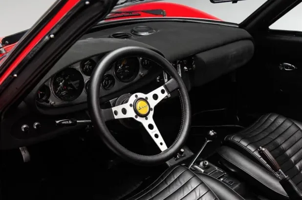 Rojo por fuera y negro por dentro mantiene el mismo motor V6 de 2.4 libros que montaba en su día; conserva también documentación e informes que ratifican la autenticidad de este espectacular Ferrari, el que condujo Cher en los años 70…