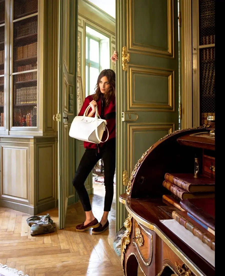 Longchamp celebra los 20 años de su mítico bolso con una reedición en piel y la modelo como embajadora.