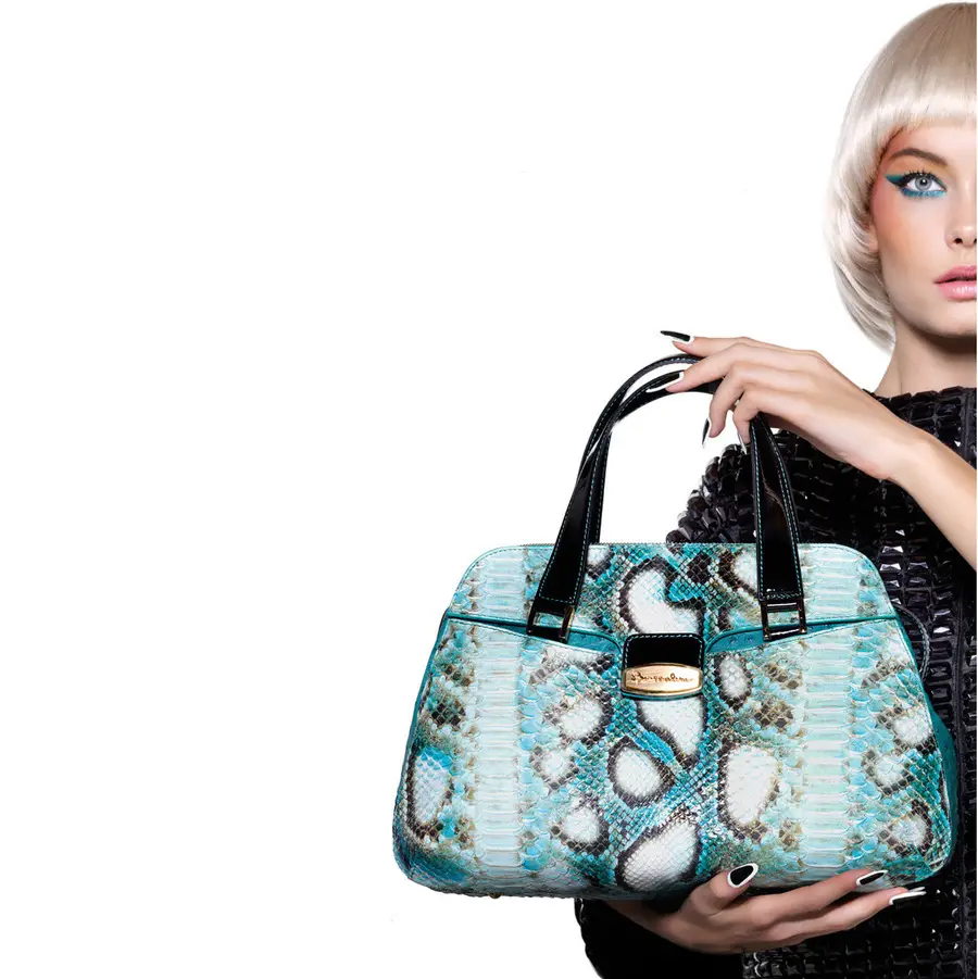 Las propuestas de su nueva colección no podían ser menos sorprendentes y tan solo basta con echar un vistazo a su catálogo para enamorarse de todos y cada uno de sus bolsos. Uno de los más llamativos es un camaleón con decenas de colores y forma redondeada, otro modelo lleva incrustados cristales a modo de piedras preciosas, algunos apuestan por la combinación de materiales y la tendencia bicolor, los cierres extra grandes o los estampados clásicos como el pitón.