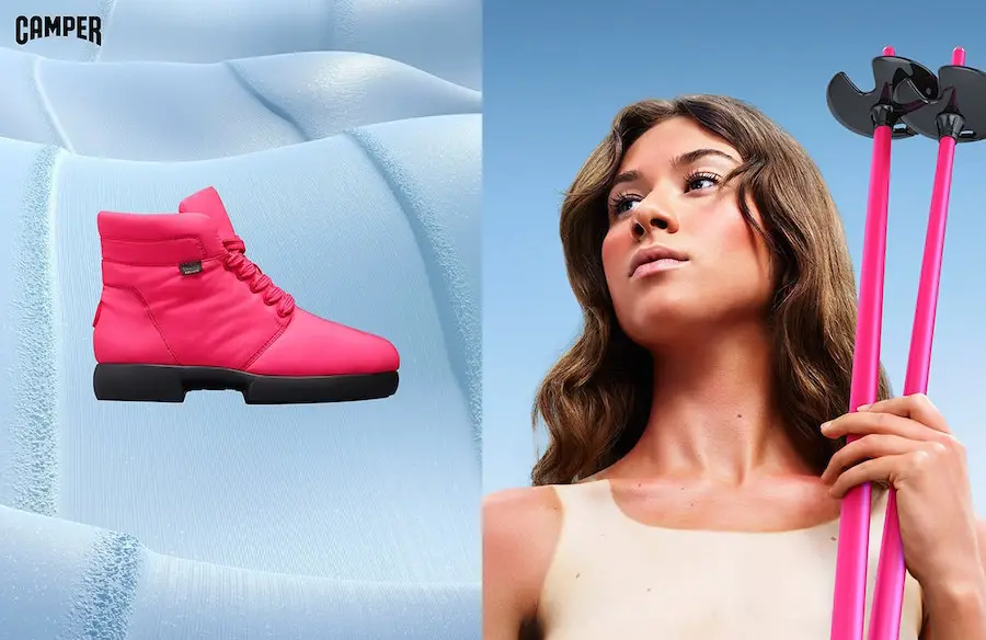Seguimos con pies calientes dentro de las Fiss, look estilo vintage de un rosa potente con detalles en neón. Las Beluga y sus formas redondeadas inspiradas en la ballena de Alaska con la que comparte nombre. También dentro de esa línea de formas circulares nos encontramos con las botas de negras de piel lisa con detalles metálicos. Y Pelotas, son las zapatillas que nos remontan a los paisajes agrestes y helados, con su rosa metalizado.