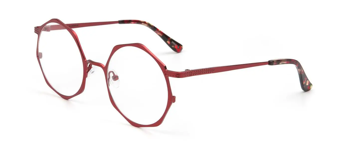 La propuesta de Mó se compone una interesante colección de elegantes monturas de metal en diferentes colores y tamaños, todas con diseños geométricos y, en el caso de las monturas de aire más femenino, con sofisticados y sugerentes detalles en carey.
