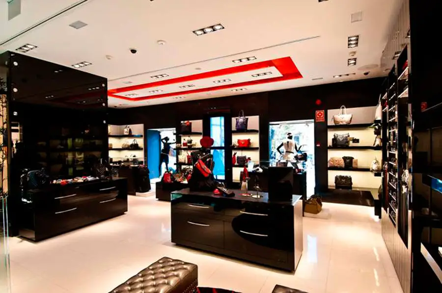 La fachada acristalada deja que el interior de la tienda se vea desde la calle e invita a los numerosos paseantes a echar un vistazo a bolsos, zapatos, relojes, joyas y gafas. 165 metros cuadrados y dos plantas en las que el único protagonista es el accesorio. El diseño del interior, en piel negra y cristal, ha sido cuidado detalle a detalle por Paul Marciano, fundador y director creativo de Guess, quien ha optado por los juegos de luces y los contrastes entre blanco, negro y rojo para dar a la tienda un aire sobrio y dejar que las miradas se fijen en todos y cada uno de los complementos que esperan en las estanterías.