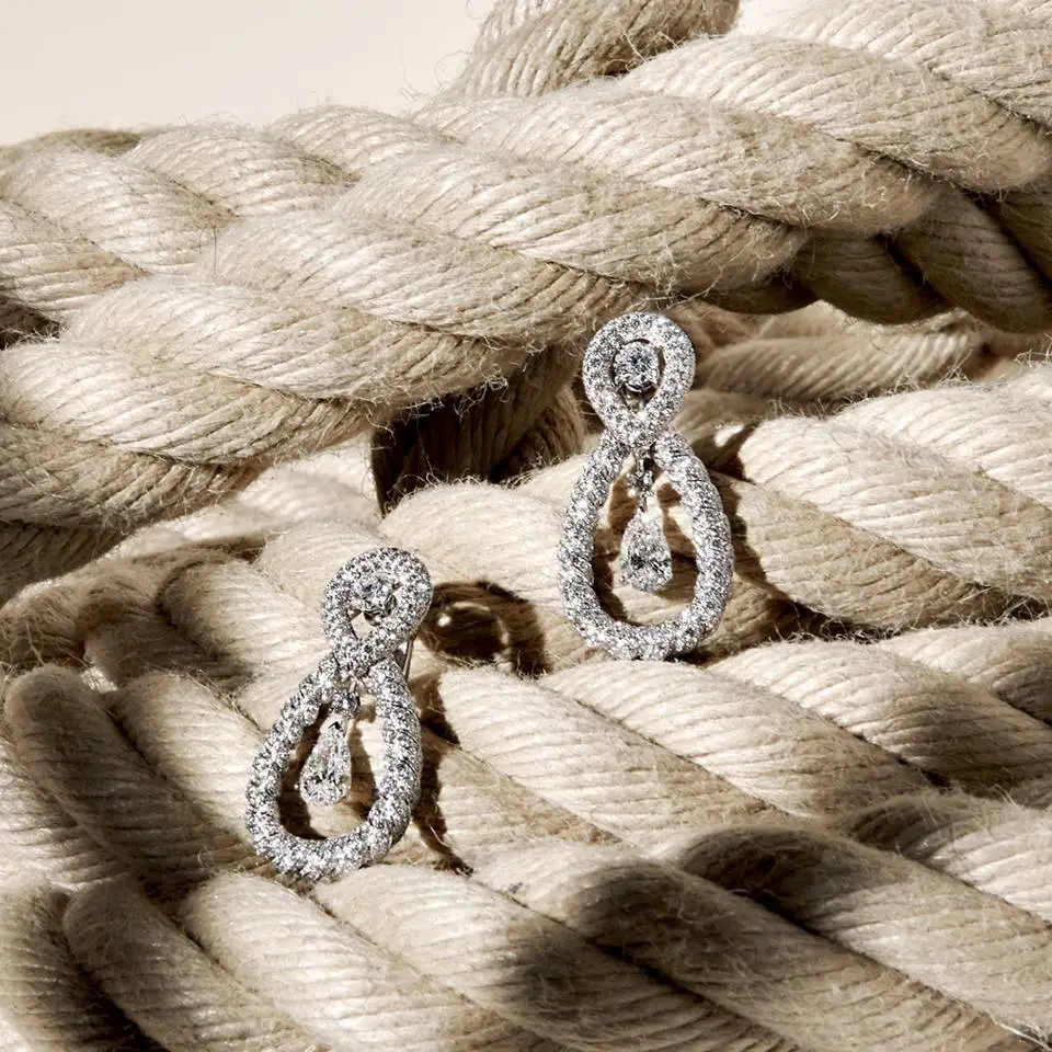 Del amor y del mar nos llegan estas nuevas piezas de alta joyería de oro blanco, rosa y amarillo decoradas con diamantes y otras piedras preciosas; entre las piezas que ha desvelado Chanel de esta nueva colección hay una que representa como ninguna otra la inspiración romántica y marinera de la colección: el collar de oro blanco y diamantes que representa un nudo marinero.