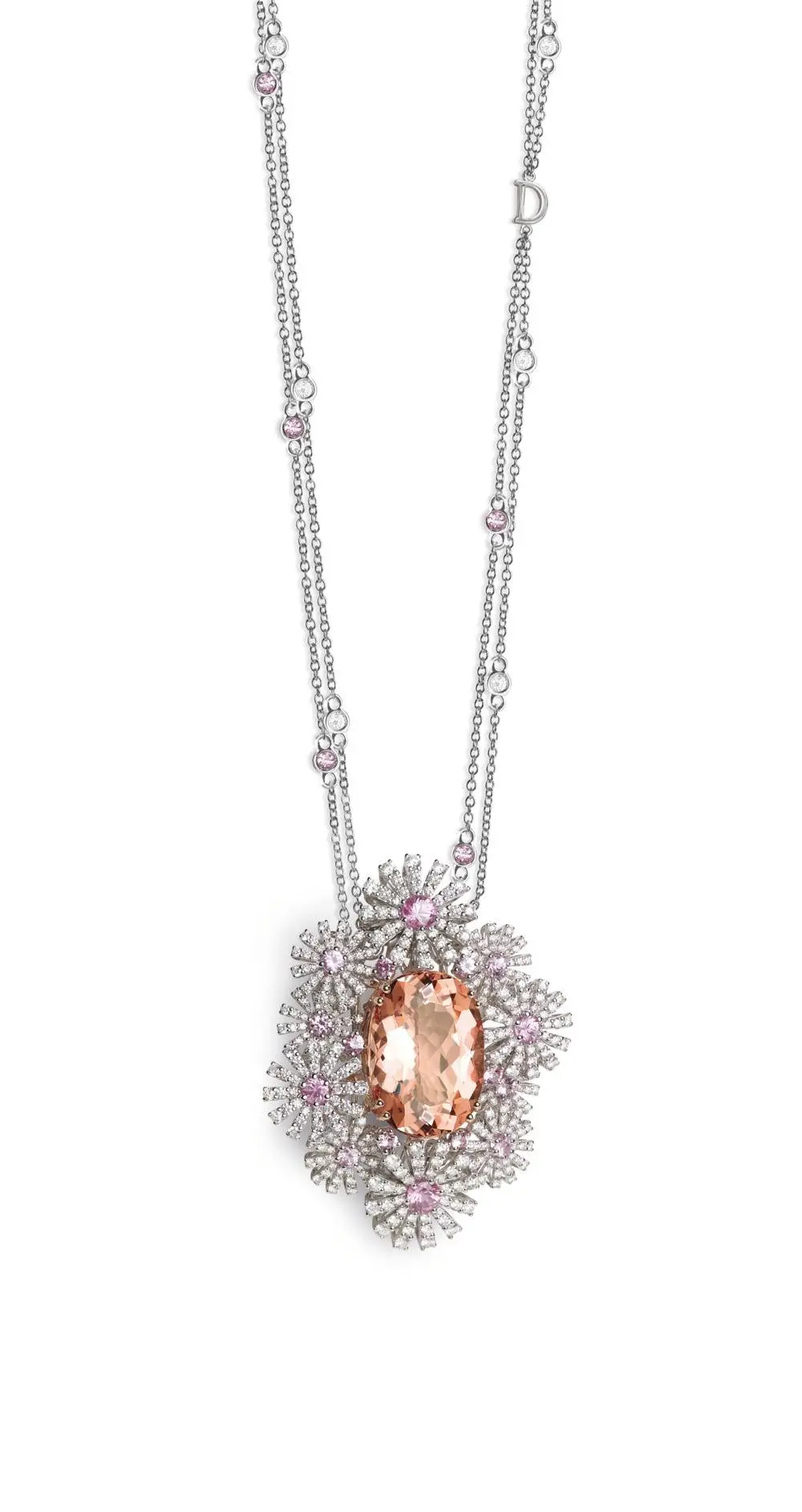 Dos son los nuevos conjuntos Margherita, uno de ellos consta de un anillo y un broche-colgante en oro rosa, diamantes, zafiros rosados y morganita (una variedad rosa del berilio que ha sido descubierta recientemente); el otro de los conjuntos por su parte consta de pendientes, anillo y broche-colgante y toma forma en oro blanco y amarillo, diamantes, zafiros amarillos y berilo dorado.