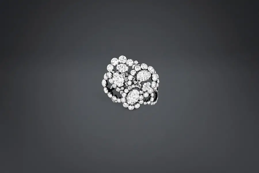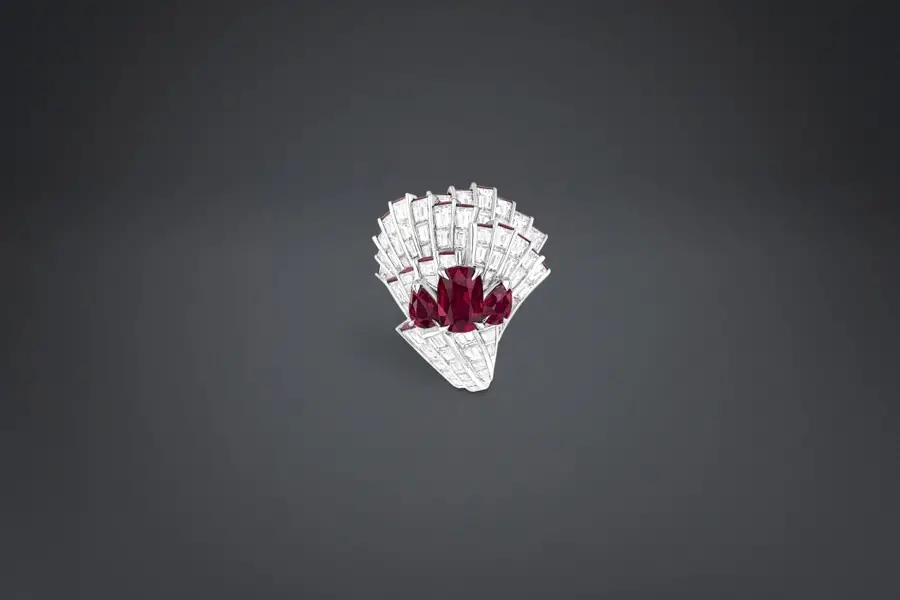 Basta un repaso de algunas piezas de la colección para darse cuenta de hasta que punto Victoire de Castellane logró su objetivo y, por si quieres comprobarlo por ti mismo, no sólo te recomendamos un artículo del propio magazine de Dior en el que muestran vestido y pieza joyera juntos y a la vez -aludiendo a la exposición en la que se han presentado los diseños- para que juzgues por ti mismo, sino que te adelantamos cuales fueron algunos de los diseños elegidos para inspirar la colección: Corolle y En 8 -presentados en febrero del 47-, Milieu du Siècle, Verticale, Zig-Zag, Ailée o Trompe-l’oeil -presentados entre los años 1949 y 50-.