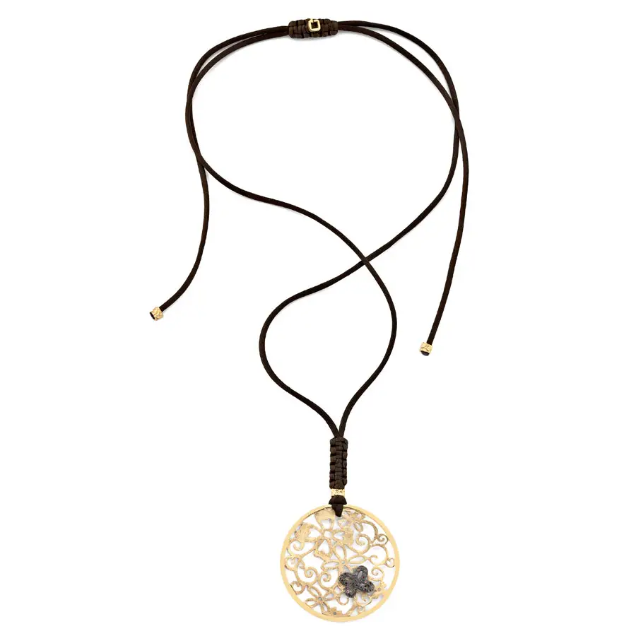 Una vez más sumergirnos en la naturaleza a través de las joyas es un verdadero placer. Plata de ley, chapado en oro amarillo de 18 kilates, cordones de piel y circonitas white and brown le dan forma a esta fantasía floral que oscila entre los 50 y los 120 euros.