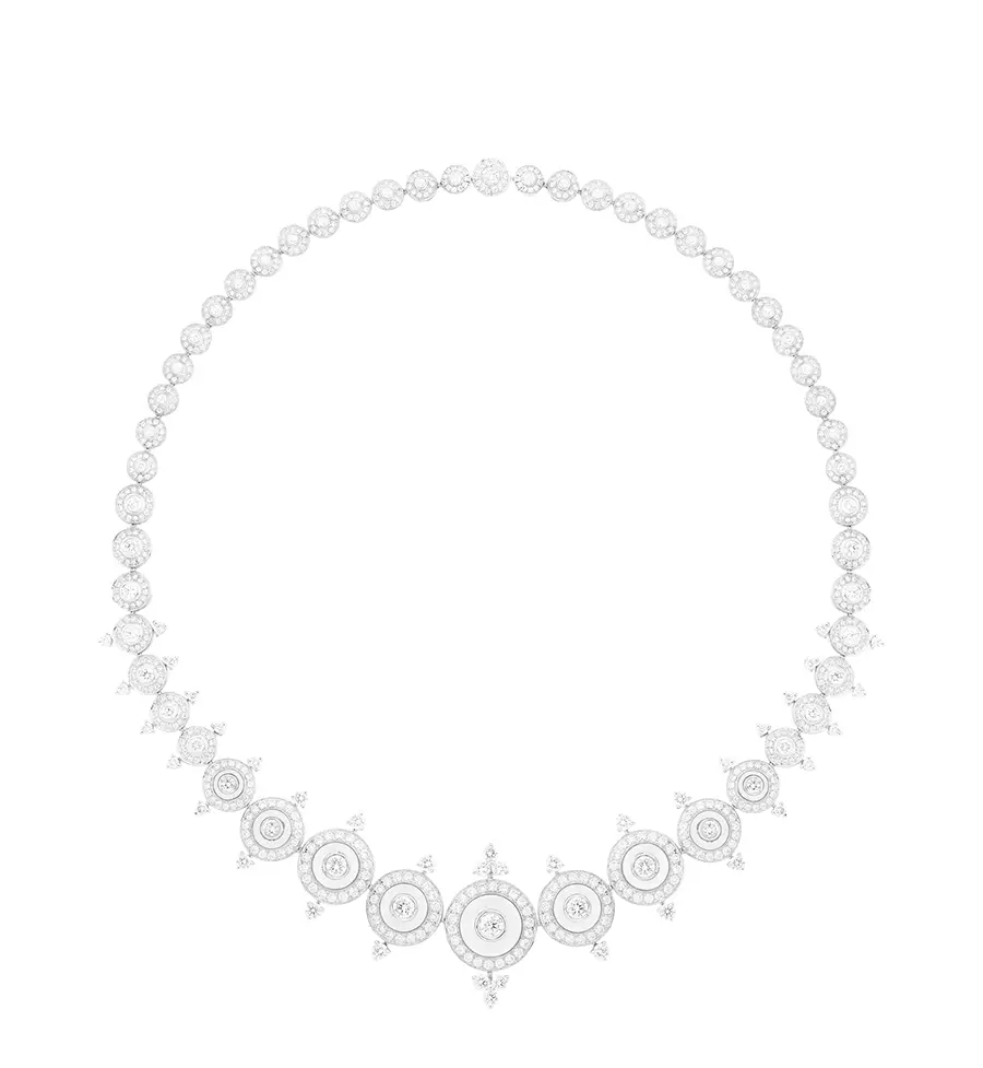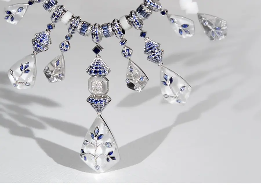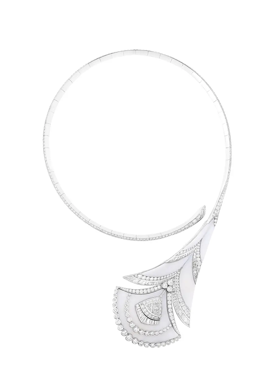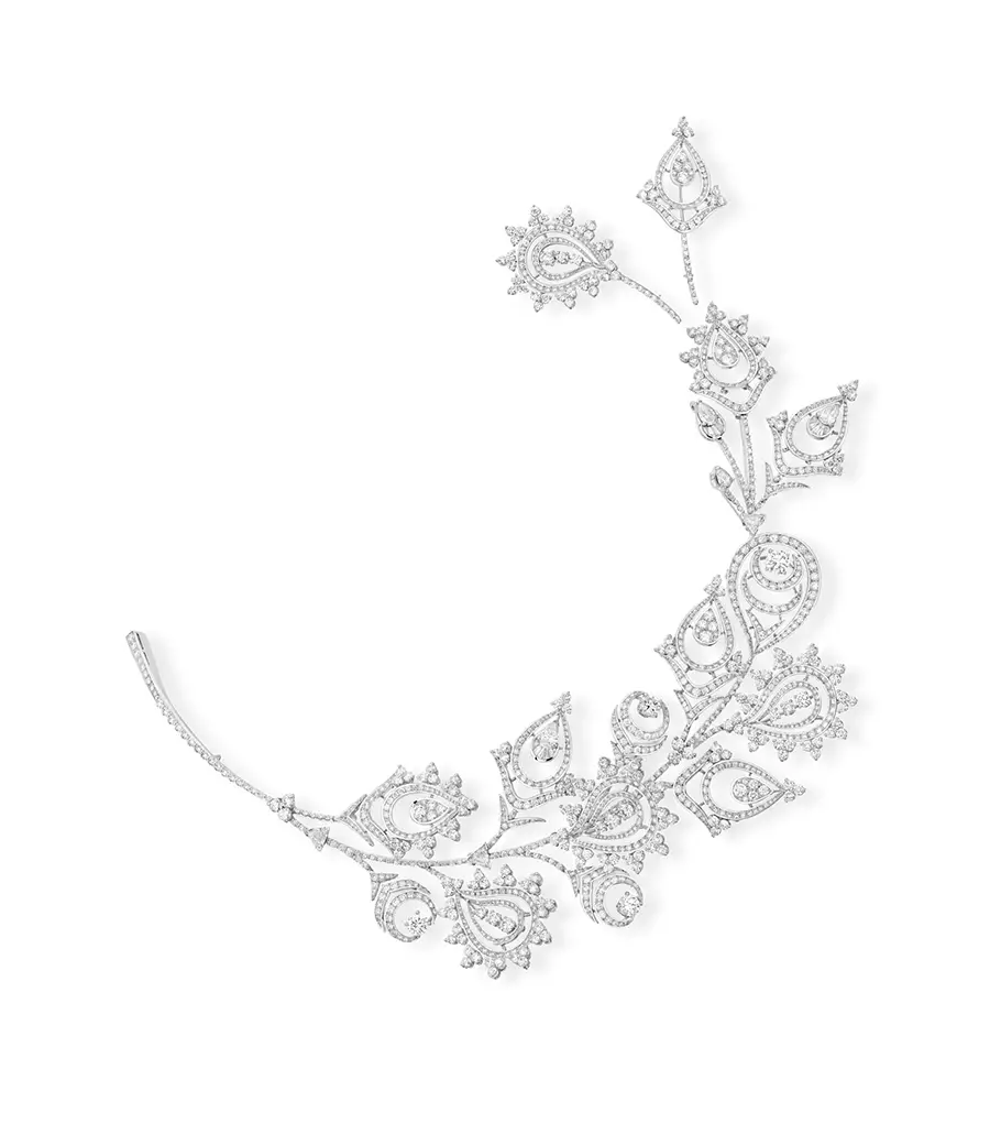 Los collares Jodhpur, Nagaur, Plume de Paon y Fleur de Lotus y el broche Mehndi son las estrellas de la colección de Alta Joyería Bleu de Jodhpur. Jodhpur, por ejemplo, es el primer collar reversible de Alta Joyería.
