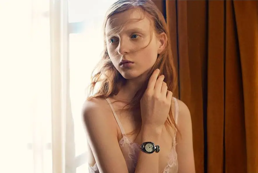 Gucci busca la complicidad de la belleza natural de la modelo del pelo rojo y los ojos azules, una australiana que desde las páginas de Vogue y desde los desfiles de firmas como Louis Vuitton, Jean Paul Gaultier, Giambatista Balli o Valentino, ha conquistado Nueva York, París, Londres y Milán; es Maddison Stubbington, una jovencísima modelo nacida en Adelaida, lugar desde el que se ha lanzado a la conquista del mundo.