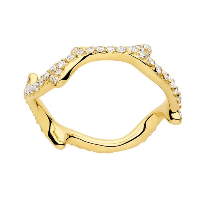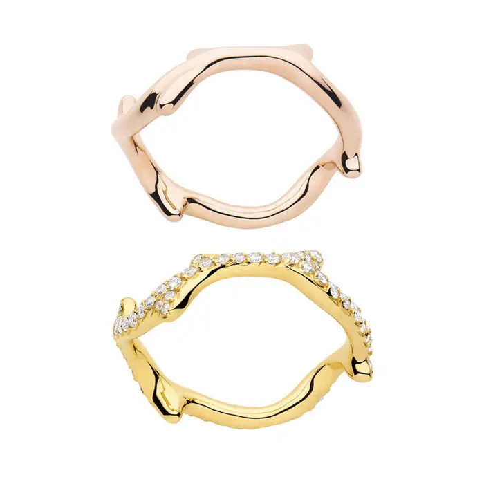 Victoire de Castellane, la diseñadora de joyas de la casa Dior, ha encontrado la inspiración para su nueva colección Bois de Rose en los nudosos tallos de las rosas, y con esta forma en mente ha modelado una colección en la que se pueden encontrar brazaletes, pendientes y anillos.