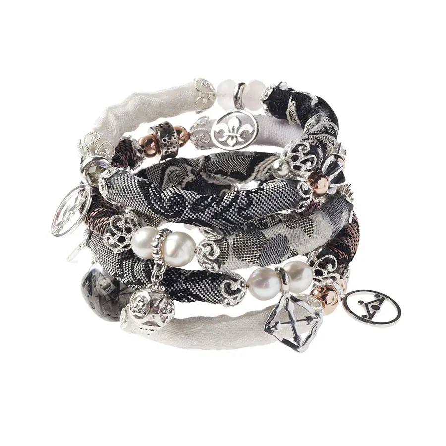 La Pulsera de la Villa se inspira en Madrid, la villa que se hizo grande, la ciudad llena de vida y contrastes donde todo el mundo cabe. Elaborada con telas de la Real Fábrica de Tapices y doce emblemas, la diseñadora resume su historia y sus monumentos: el Palacio de Oriente y El Escorial, el Museo del Prado, la Puerta del Sol y la diosa Cibeles, San Isidro, Luis Candelas, Carlos III y la Puerta de Alcalá. Lugares y personajes tan variopintos como las personas que llenan de vida sus calles, parques y avenidas.