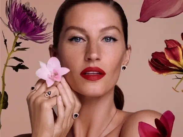 Envuelta en flores y hasta tocada con ellas o sosteniéndolas entre sus manos, con un fondo rosado, romántico y cálido, también acogedor, así posa la bella entre las bellas, Gisele Bündchen para mostrarnos lo último de Vivara, su colección de Navidad que lo es también de verano y que nos gusta tanto como nos gusta Gisele.