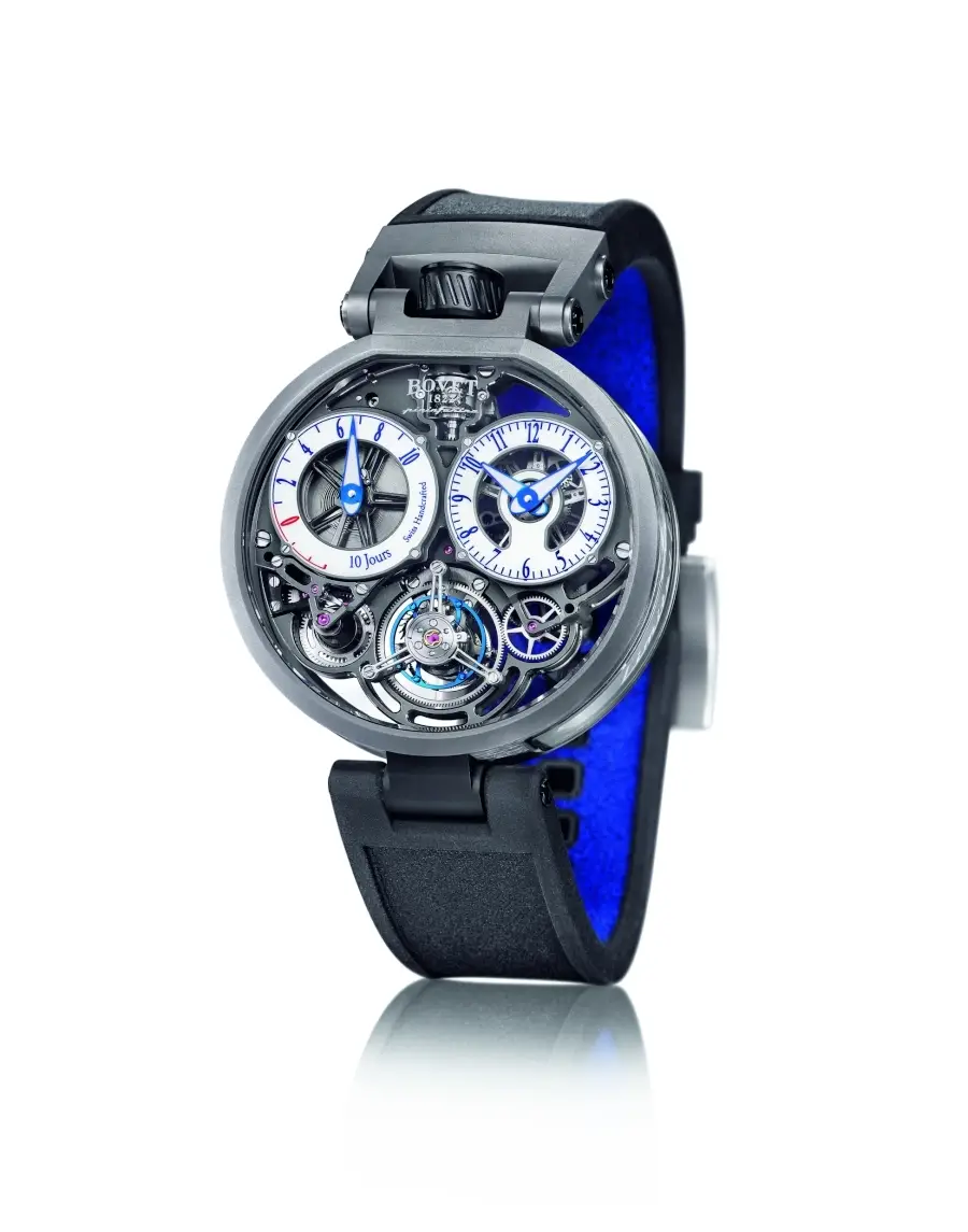 No hay marca de Alta Relojería que se precie que no tenga en su colección uno o varios tourbillones. Algunos de los más notables de este año son el Tourbillon Volante Ottantasei de Bovet que, además de ser el cuarto tourbillon de la marca (con 10 días de autonomía de marcha) y de portar los signos estéticos de la colección by Pininfarina, está plagado de innovaciones, entre ellas la introducción de cuatro cristales de zafiro para ambos lados de la caja y sus laterales. Una sensación de ingravidez y una ligereza que se materializan en un reloj que pesa solo 15,54 gramos. Este modelo se dita en edición limitada a 86 piezas en titanio y es objeto de tres patentes.