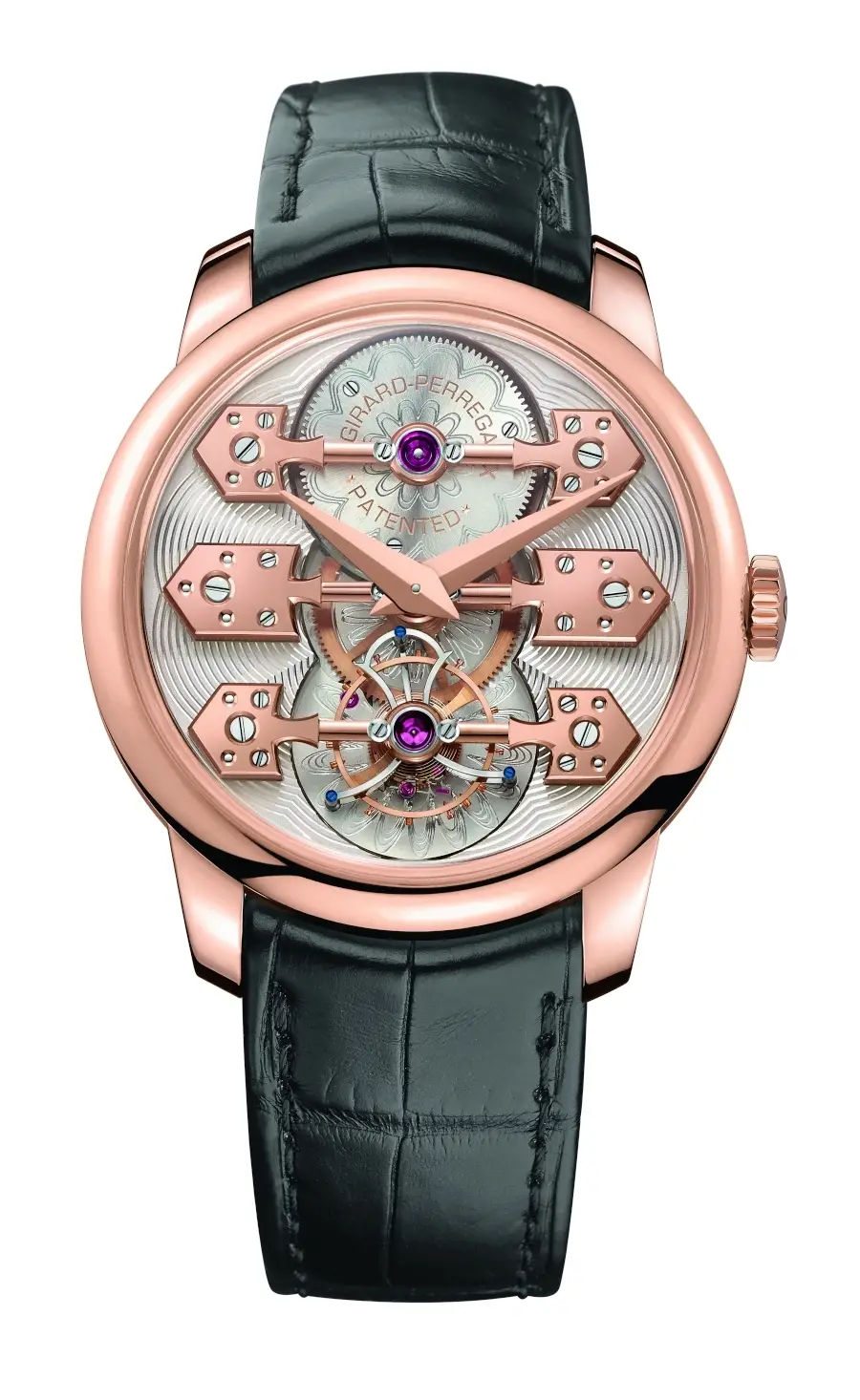 Girard-Perregaux, un asiduo al tourbillon, ha presentado este año el Esmeralda Tourbillon, que se inspira en su famoso cronómetro de bolsillo que logró la medalla de oro en la Exposición Universal de París de 1889 y que tiempo después se convertiría en propiedad del General Porfirio Díaz, en ese entonces Presidente de México. El tourbillon de la casa se caracteriza por sus famosos puentes de oro, que en este modelo de oro rosa acaparan toda la esfera.