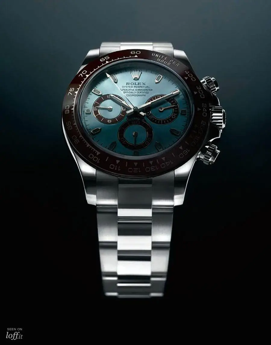 Claro que no sólo en platino luce el Cosmograph Daytona, también en acero, oro amarillo, blanco, everose o bicolor con pulsera de metal o piel y la esfera al gusto porque Rolex te ofrece la posibilidad de personalizar tu reloj, elegir los detalles del tal modo que tu Daytona será único.