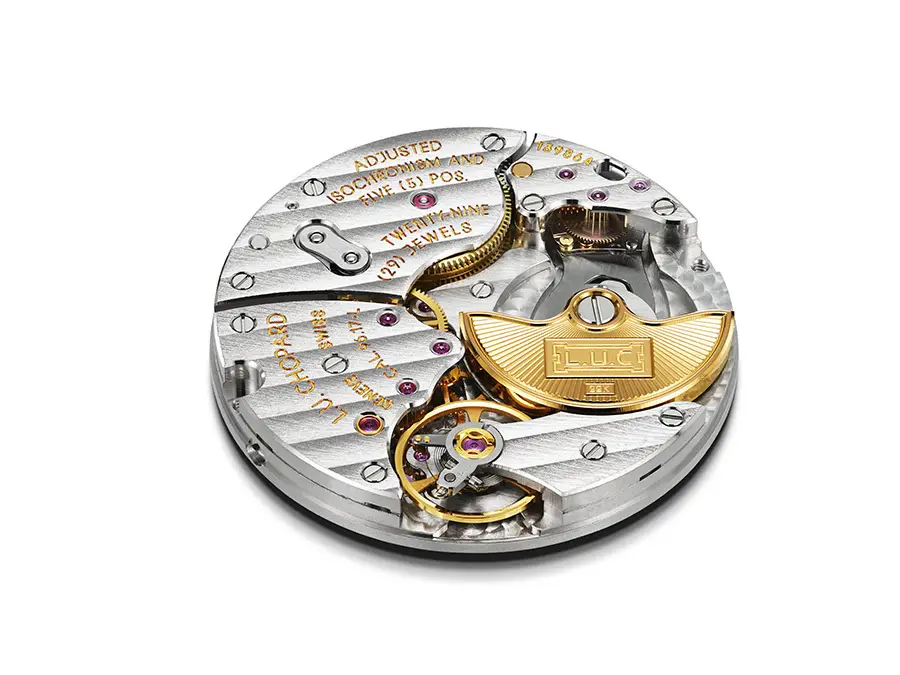 La armonía y la perfección reinan también en el universo mecánico del reloj extraplano L.U.CXP Urushi, que se equipa con un calibre de carga automática decorado a mano por los artesanos de Chopard. Su belleza aflora a través del cristal de zafiro del fondo. La caja en la que se protege es de oro rosa o gris de 18 quilates con un diámetro de 39,5 mm y 6,8 mm de espesor.