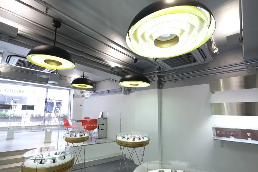 Nada más entrar en la tienda, llaman la atención las paredes blancas y plateadas de la tienda, que contrastan con las lámparas, muebles y accesorios coloridos de los años 50 y 60 que la decoran. Un espacio retro pero innovador al mismo tiempo, en el que se pueden admirar, ver y tocar todas las creaciones con las que año tras año nos sorprende la firma.