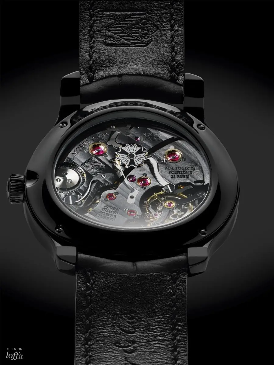 El Perpetual Calendar Black Edition de H. Moser & Cie presenta un calendario perpetuo tan complejo en su cofección como sencillo es de utilizar: este mecanismo cambia la fecha con absoluta precisión en tan solo una fracción de segundo, además admite el cambio manual hacia delante o hacia atrás sin dañar el propio mecanismo; la indicación del mes aparece a una escala superior a la que estamos acostumbrados a ver y una tercera aguja, más pequeña y en forma de flecha, indica los meses que se incluyen en los índices de las horas.