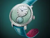 El Luna Magna Ultimate II es una nueva y espectacular pieza de Arnold & Son, un reloj que luce el resplandor azul verdoso de la turmalina de Paraíba y que se decora con cristales de rutenio con tratamiento PVD y con diamantes de talla baguette alrededor de su esfera. A la espectacularidad de su diseño y del color de una de las piedras más raras, preciosas y preciadas del mundo, la turmalina de Paraíba, hay que añadir su exclusividad porque el Luna Magna Ultimate II se producirá en una edición limitada a ocho unidades.