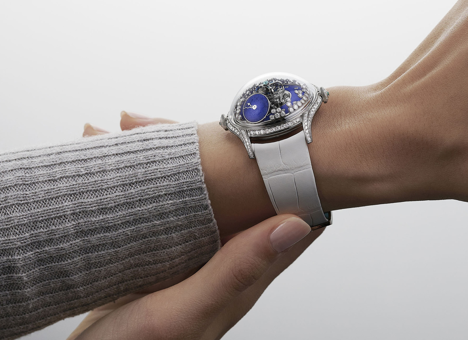 Blizzard por su parte presnta diamantes de talla brillante engastados también bajo la cúpula de crital de zafiro y diamantes sobre una esfera de lapislázuli mate.