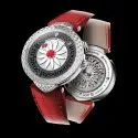 Los relojes Marguerite son en realidad una fábula relojera. Dos gráciles mariposas revolotean alrededor de la margarita que ocupa el centro de la esfera y despliega todo su encanto con sus pétalos lacados en blanco. Las mariposas no pueden resistirse y giran alrededor de la flor acompañando al tiempo. En este reloj hay técnica y poesía. Las mariposas, bañadas en Superluminova azul, naranja o roja –según versión-, tienen un fuerte simbolismo. La más oscura representa a la mujer y es la que marca la hora. La más clara simboliza al hombre y es la que indica los minutos. Esta mariposa aletea alrededor de la esfera de nácar blanco y lo hace sobre el extremo del tallo que está fijado al delicado pistilo de rubíes o zafiros azules.