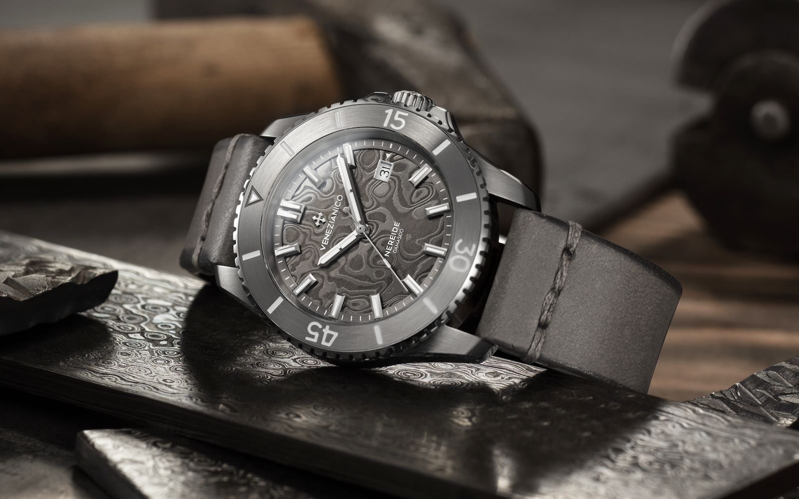 Lo primero que tienes que saber de este Venezianico, el Nereide Damasco, es que no hay dos iguales porque su proceso de fabricación es totalmente artesanal y artístico, dicho de otro modo, estamos ante un reloj de buceo en el que cada pieza es única, un reloj que celebra la herencia metalúrgica de Venecia, lugar en el que confluyeron durante siglos Oriente y Occidente gracias al comercio; un detalle, el del encuentro entre Oriente y Occidente, no menor en ningún casi y menos que en ninguno en este porque hablamos de un reloj elaborado con acero de Damasco en Venecia.