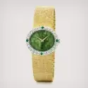Jackie Kennedy se enamoró de la belleza de un reloj creado por Piaget en 1965 de oro amarillo con bisel engastado con 24 brillantes y 4 esmeraldas sobre oro blanco. Tiene la esfera de jade y el brazalete fue tejido en oro con acabado artesanal “Palacio”. Este modelo fue recuperado por Piaget. Lo compró en Sotheby’s en 1996, en la subasta de las pertenencias de la que fue primera dama de Estados Unidos.