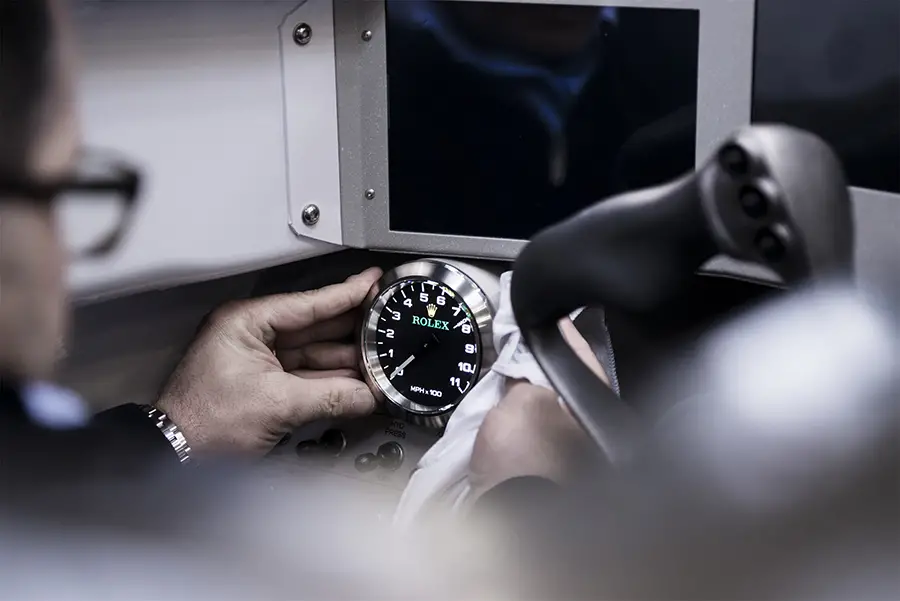En 2011, Rolex se unió al BLOODHOUND Project como cronometrador oficial y el año pasado comenzó a desarrollar y manufacturar un cronógrafo y un velocímetro analógicos que formarán parte de los instrumentos de a bordo del coche supersónico. Combinan la tecnología más puntera con los estandartes de precisión y fiabilidad de los que ha hecho siempre gala Rolex.