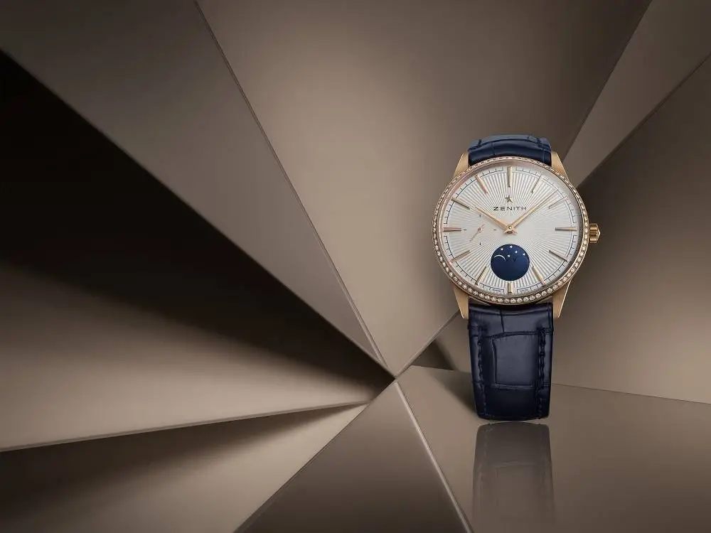 Zenith presenta un par de relojes de escándalo para regalar en San Valentín: Elite Moonphase, en oro rosa y coronados con diamantes...