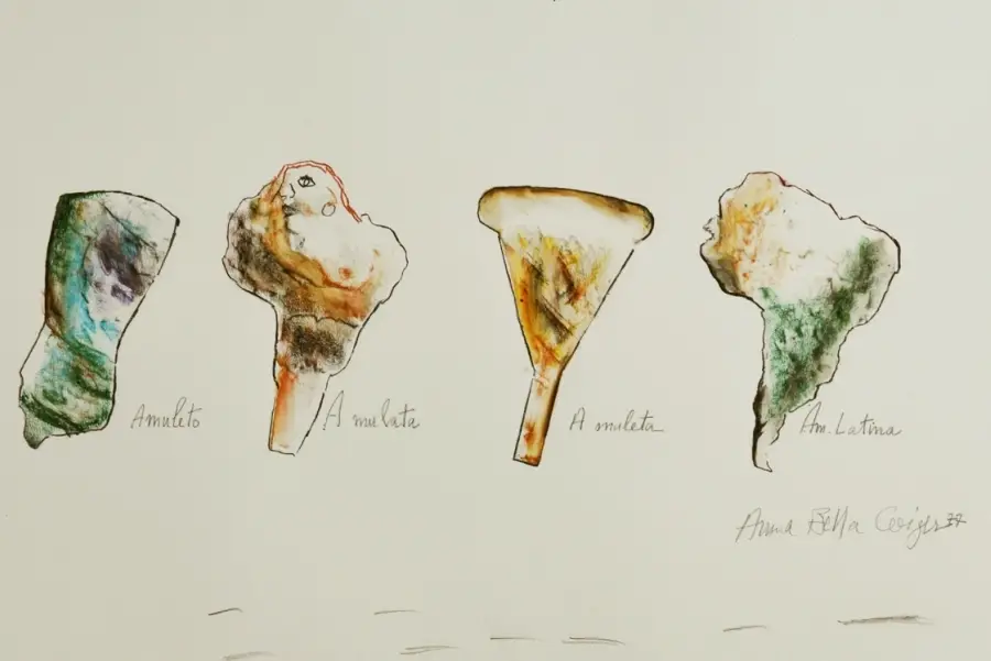 Anna Bella Geiger nació en Río de Janeiro hace ochenta y tres años. Descendiente de judíos polacos, su existencia transcurre entre los recuerdos de su familia y su propia experiencia brasileña. Aunque entre las coordenadas de Anna Bella se ocultan valiosísimos tesoros cuya historia trasciende lo meramente físico, es el mapa de América el que le obsesiona y le fascina a partes iguales. Porque es en él donde reescribe su personal discurso artístico. Un relato entre poético y político; entre lo propio y lo ajeno; lo nativo y lo extranjero. Una especie de autobiografía camuflada que se desliza con delicadeza e inteligencia. Pero, ante todo, con una radicalidad extrema que apenas se aprecia a primera vista. Y es que sus mapas, además de contener las líneas necesarias para no perderse, llevan reescrita una intención mucho más sublime. La de trastocarlos, reinventarlos, volver a narrarlos desde el principio. Desde sus principios.