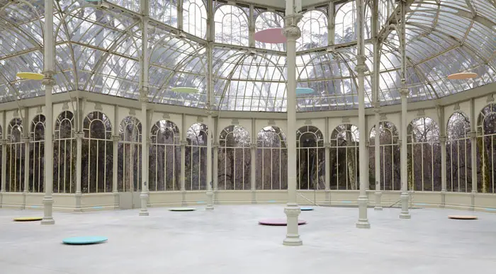 La memoria, aquella facultad psíquica por la cual retenemos y recordamos el pasado, es absolutamente caprichosa. En «Memorias Imaginadas», una instalación realizada específicamente para el Palacio de Cristal del Retiro, Mitsuo Miura rescata todas aquellas experiencias vividas anteriormente en este espacio convirtiéndolas en una prueba sensorial en la que la pintura y la escultura más esquemática se entretejen con el espacio interior y exterior creando arquitecturas irreales libres y dispersas.