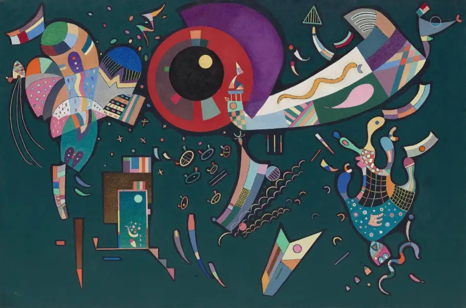 Obligado de nuevo a abandonar Alemania cuando la Bauhaus cierra bajo las presiones nazis en 1933, Kandinsky se traslada a París, cobijándose bajo el manto del surrealismo y las fuerzas de la naturaleza. Este último periodo es de los más prolíficos del artista, quien experimenta con nuevos materiales, suaviza las formas y templa su paleta cromática. También regresa a los formatos a gran escala e incorpora elementos surrealistas, sin duda influido por Paul Klee.