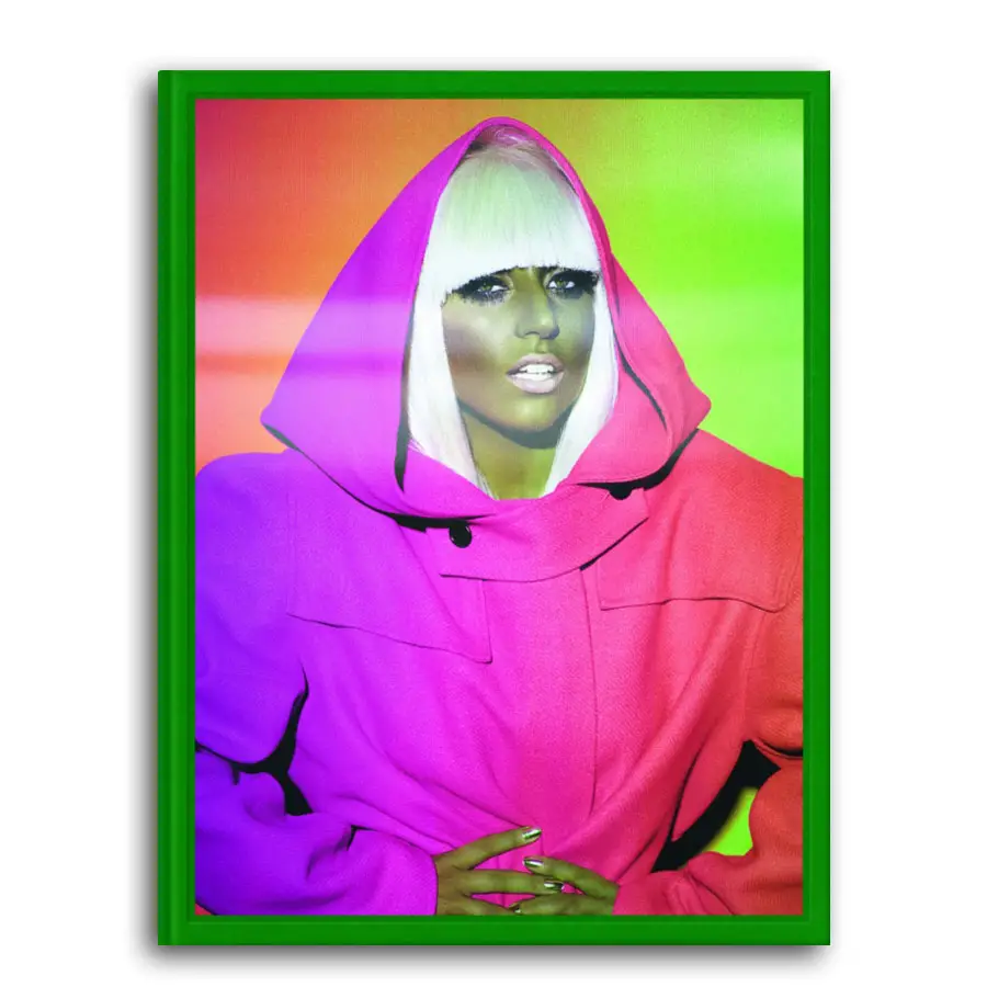 Tapa dura en una caja de plástico inyectado en molde con un retrato holográfico de Lady Gaga en la cubierta.