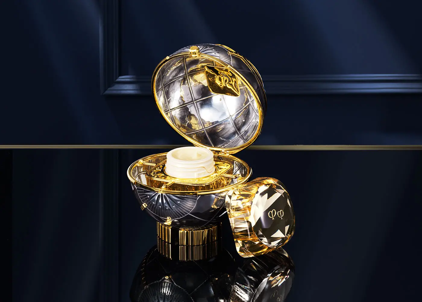 La Cremè es la luminosidad del sol llevada a nuestra piel por Clé de Peau Beauté y tan rica esencia cosmética se guarda en un envase de oro rojo de 18 quilates y plata pura que guardarás para siempre como tu joya más preciada. El diseño de estas piezas es tan complejo que su elaboración está solo al alcance de dos talleres, los únicos que pueden craer esferas de plata pura de este tamaño, de ahí su producción lenta, su exclusividad, su valor multiplicado por encima del valor que tienen por la excelencia cosmética que contiene y por los metales preciosos utilizados en su elaboración.