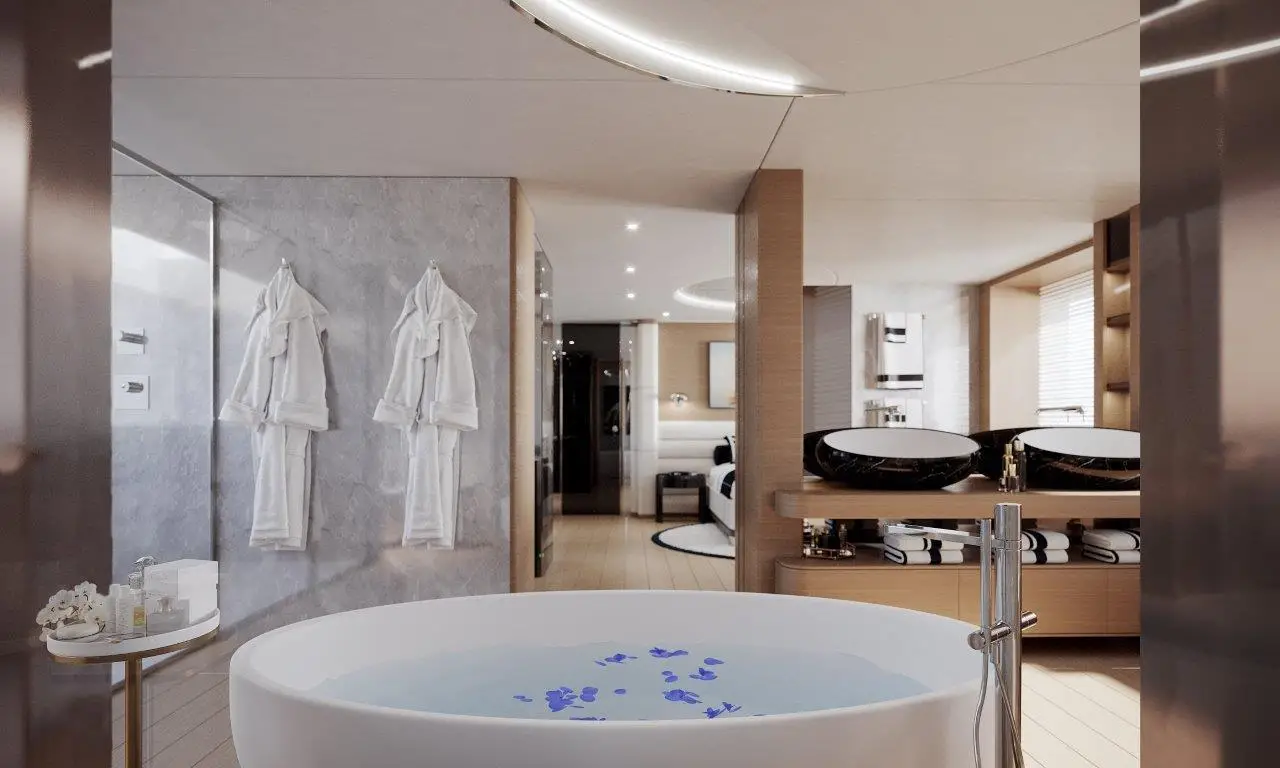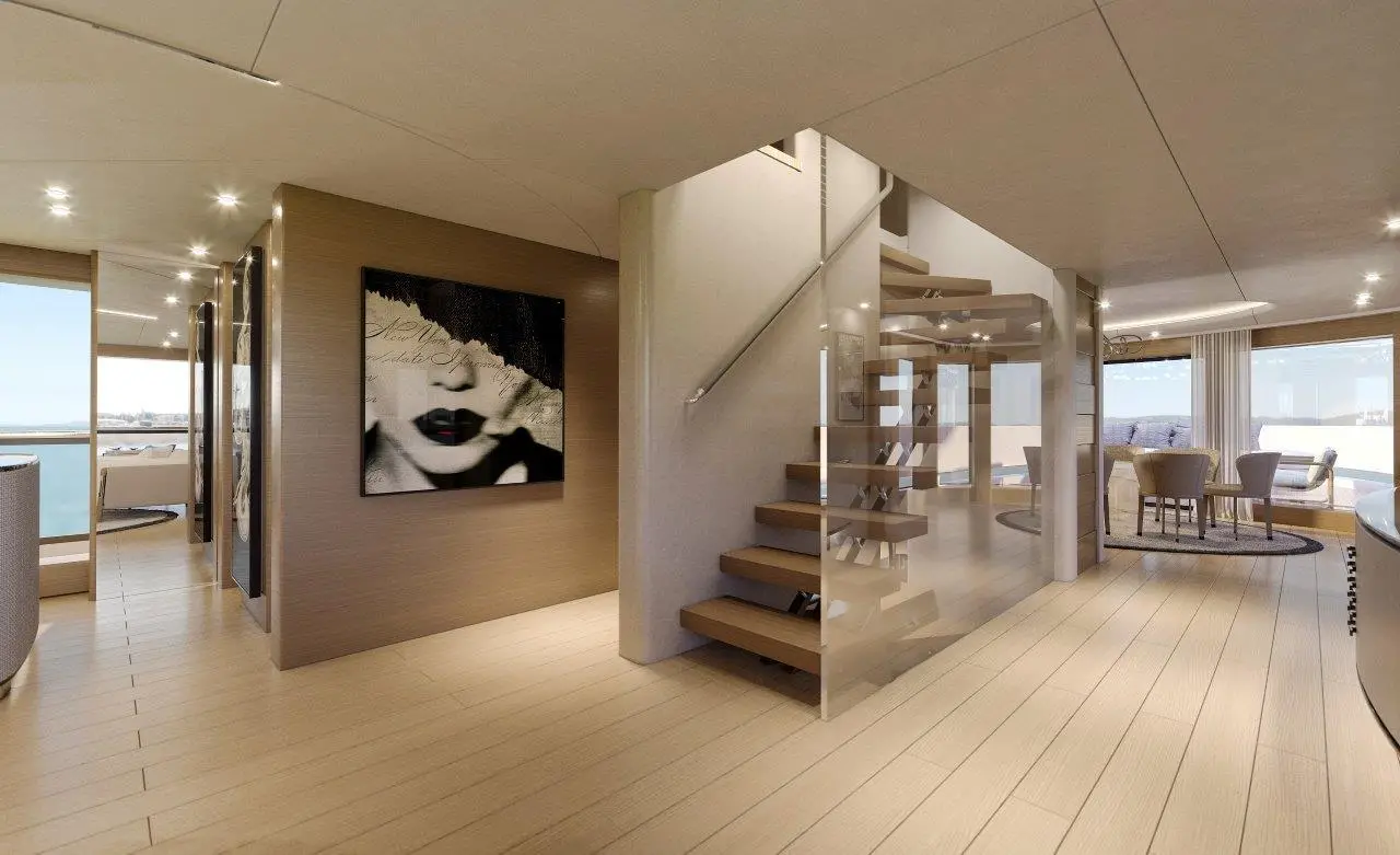 B.YOND 37M ha sido diseñado para navegaciones largas y sin escalas y para navegar todos los mares del mundo sean cuales sean sus condiciones climáticas, es un yate explorador y por eso cuenta con una bodega en la que transportar todos los vehículos de apoyo o la maquinaria que sea necesaria para el proyecto de exploración que se vaya a desarrollar; pero además este nuevo yate es un Benetti así que cuenta con todo el lujo y el confort de esta mítica firma náutica: espacios amplios en el interior, una zona reservada a la tripulación e incluso un gimnasio para mantenerse en forma durante las navegaciones largas.