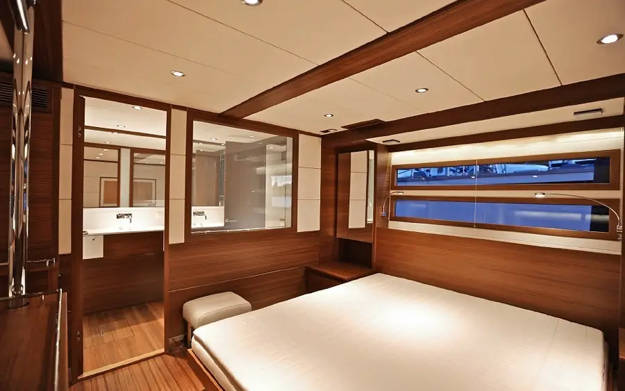Por su diseño exterior, el Delta 88 es un yate de línea deportiva que esconde en su interior un mundo de comodidad, lujo e incluso sofisticación; este barco dispone de cuatro camarotes y un quinto para la tripulación que, en un yate de estas características, se estima será de cuatro personas; llama la atención el sofá en forma de U, la acogedora decoración interior en madera, también las elegantes mesas plegables y, en general, el lujo que trasciende a todos los espacios interiores del yate; dispone además de un garaje que incluye una Williams jet Ribs y espacio para una segunda unidad.