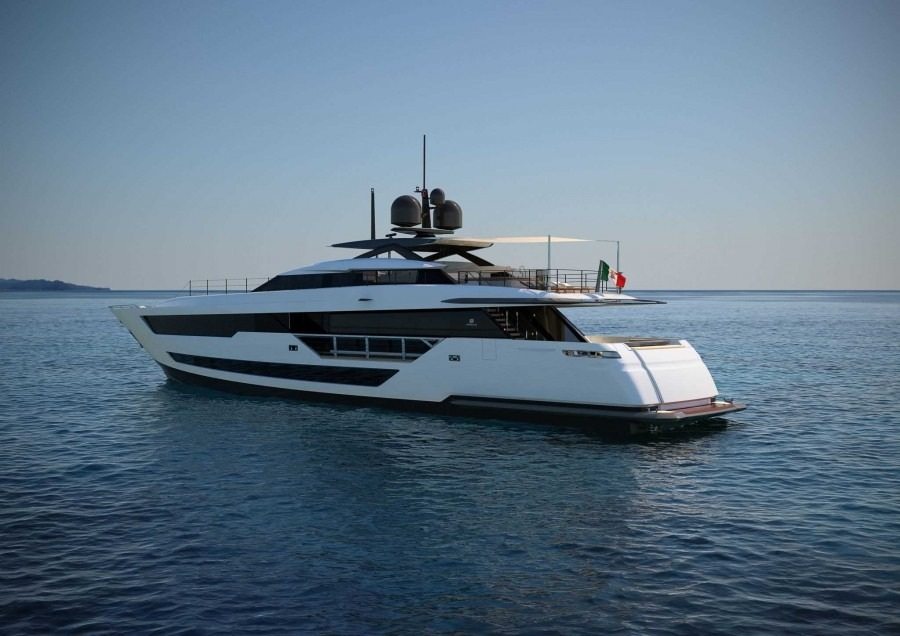 Custom Line 120, el nuevo yate deportivo de lujo de escándalo de Ferretti que navegará entre Miami y el Caribe.