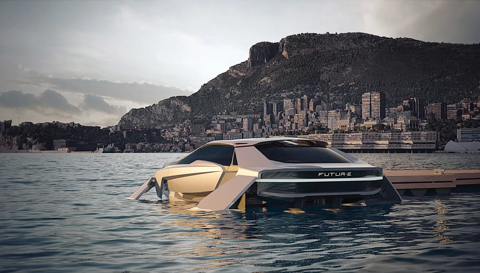 Casi nada en el Future-E parece un yate sino más bien un coche de lujo y vanguardia pero navega, ergo es una embarcación.