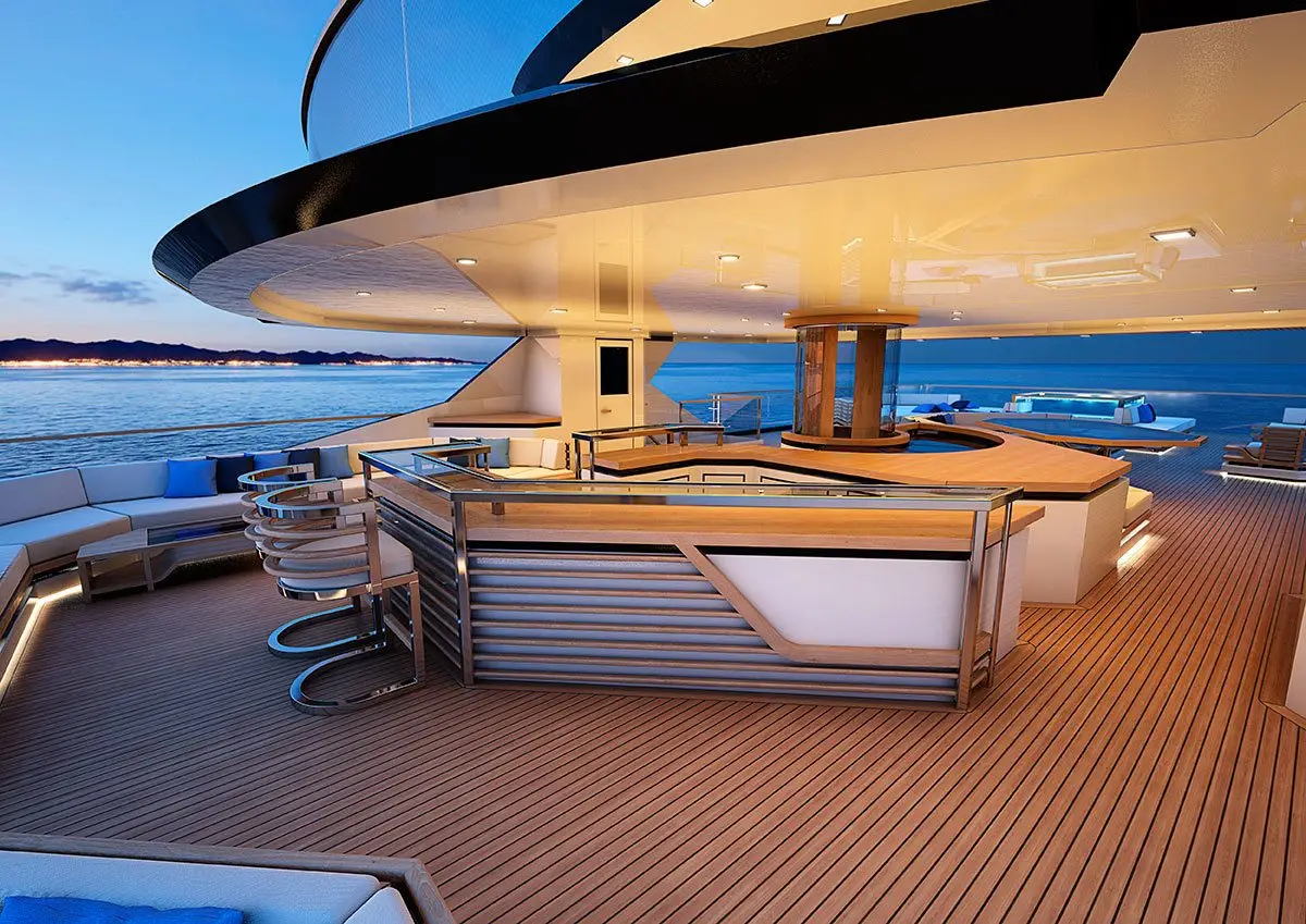 En Vanguard confluye su utilidad como yate para exploradores, de ahí la importancia de reservar espacio en su bodega para los accesorios que un explorador pueda necesitar, y su comodidad como yate de lujo, de ahí que la piscina sea climatizada y cubierta y que pueda descubrirse gracias a paneles móviles según el clima por el que navegue el Vanguard.
