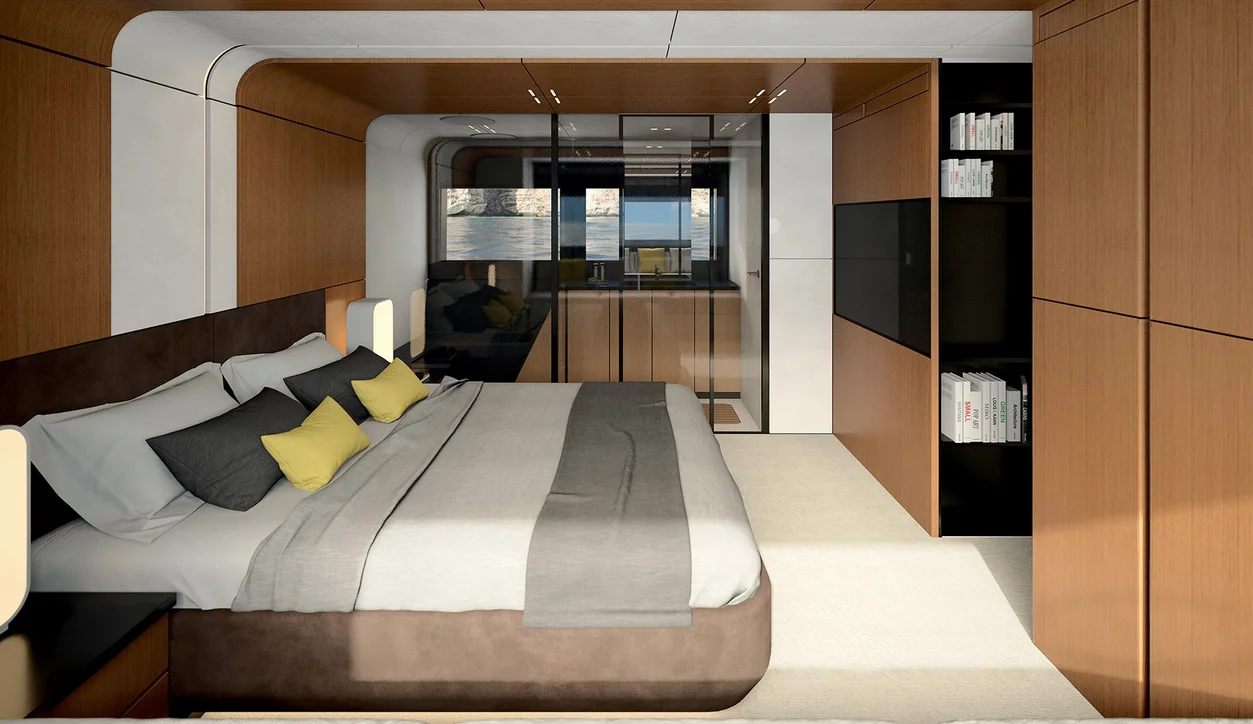 El wallywhy100 es un yate de lujo compacto y elegante que presenta una líena de diseño muy propia de Wally, de aire moderno y vanguardista; es una embarcación de lujo y diseño pensada para que hasta 6 navegantes puedan alojarse a placer en ella, de ahí que cuenta con una cabina principal en popa y dos cabinas más para invitados.