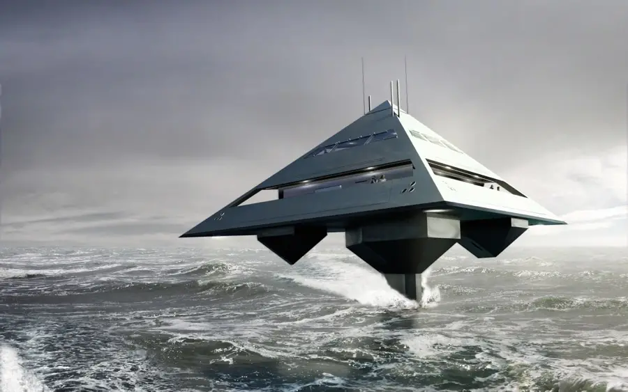 Un yate fuera de lo común o una pirámide que puede sobrevolar el agua, un nuevo modo de navegar, un concepto de yate diferente...