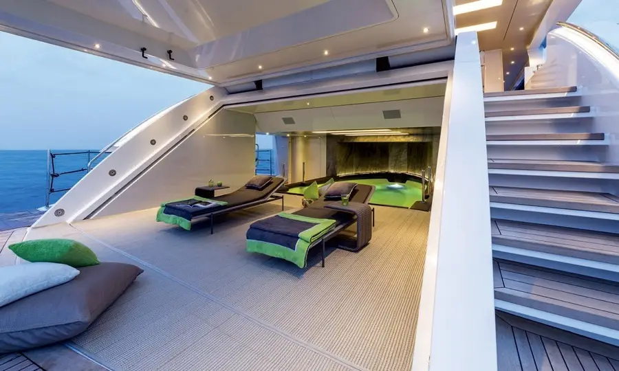 Las imágenes que hoy os mostramos corresponden al Genesi, un yate con un beach club único por su amplitud y una piscina de agua salada de 7 metros, con un Wider 32 abordo y con un estilo en su decoración que deja perplejo incluso a quienes acostumbran a moverse en el mundo del lujo y la sofisticación. Y es que esta embarcación bien pudiera ser un yate llamado deseo…