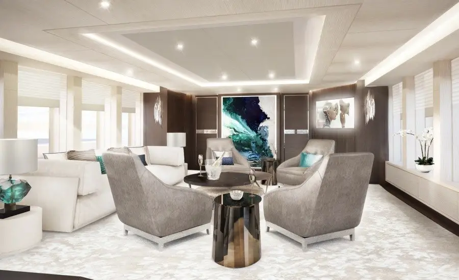 Las zonas interiores presentan un diseño exquisito, la madera da cierta calidez a los espacios íntimos de Maia sin oscurecerlos porque el interior de esta embarcación es muy luminoso y resulta de una elegancia de lo más sofisticada; beige, gris perla, cristales y espejos completan un interiorismo que nos hace pensar que estamos en un apartamento más que en un yate… o en un yate como un apartamento ¿te imaginas escribiendo el diario de abordo en el escritorio que está bajo la ventana? descúbrelo en nuestra galería… y prepárate para desear a Maia.