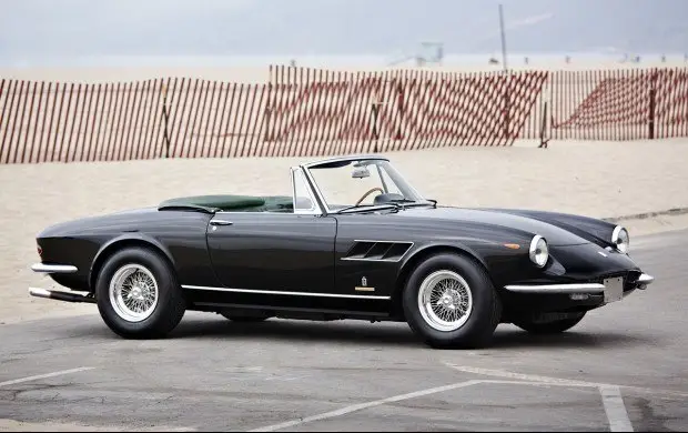 Este raro raro Ferrari 300 GTS, el spider, descapotable, con el sello Pininfarina, lo es por varias razones. Primero por eso, porque es descapotable, pero también por que en sus tiempos era uno de los deportivos de dos plazas más veloces del mercado superando los 240 kilómetros hora. Y tercero porque de este modelo sólo se fabricaron 90 unidades, y de eso hace ya la friolera de 50 años. Originalmente lucía un color rojo, el Rosso Cina, un rojo chino y sus interiores eran negros. El chasis y la carrocería son los originales, restaurados y en perfectas condiciones y es una delicia ver el estado de su salpicadero y de su motor V12 de cuatro litros. Su precio estará entre los 2 y los 2,4 millones de dólares.
