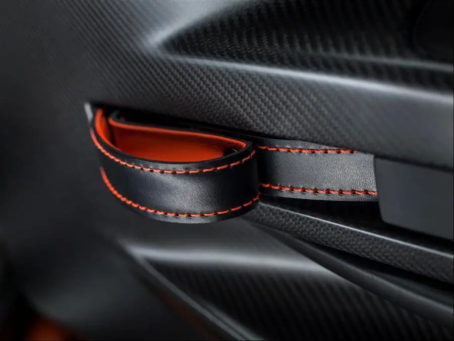 El interior del coche está ampliamente reelaborado, también, con una consola central de fibra del carbono y matriz de control sensible al tacto, junto a sus asientos deportivos de fibra.