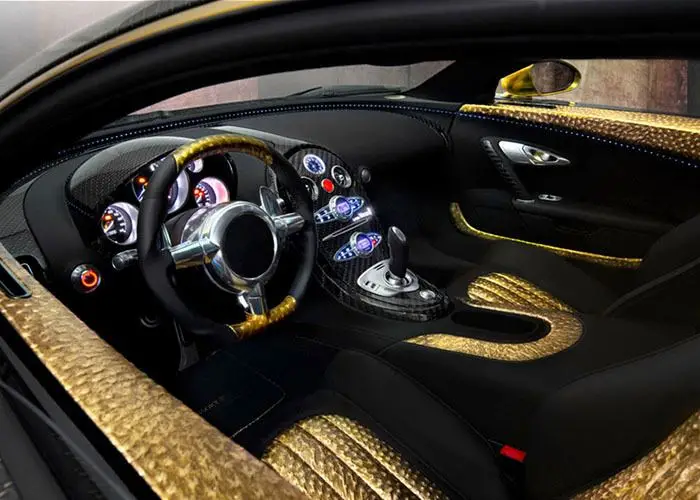 El nombre de Vincerò viene del aria Nessun Dorma, de la Turandot de Puccini. Vincerò d’Oro es el siguiente y aún más exclusivo nivel de preparación del Bugatti Veyron realizado por Mansory, donde el dorado se vuelve protagonista de la decoración y el nombre.